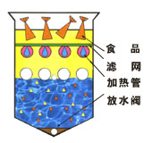 該工藝通過限位控制,分區控溫,科學利用植物油與動物油的比重關系,使油炸類食品浸出的動物油自然沉入植物油下層,這樣中上層工作油始終保持純凈,可同時炸制各種食品,互不串味,一機多用,可增加您的經營品種。